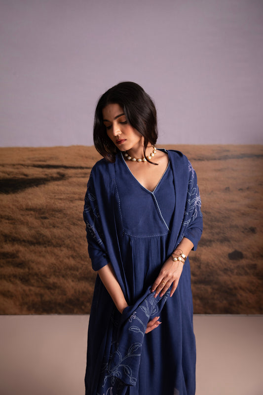 Indigo Linen Kurta Set with Odhani