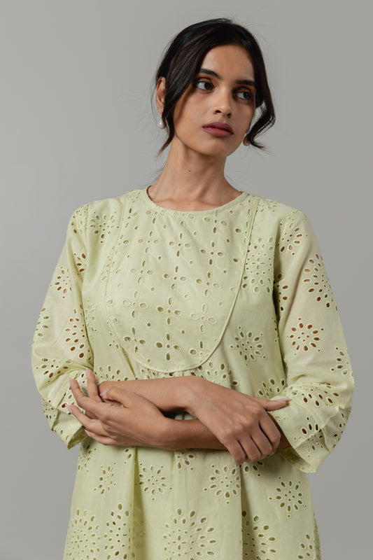 Matcha Green Cotton Cutwork Dress