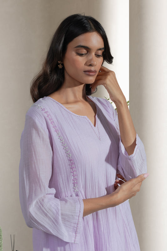 Crinked Cupro Lavender A-Line Kurta Set