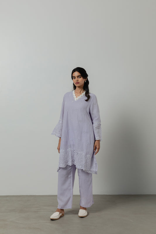 Gentle Lavender Cutwork Linen Co-ord Set