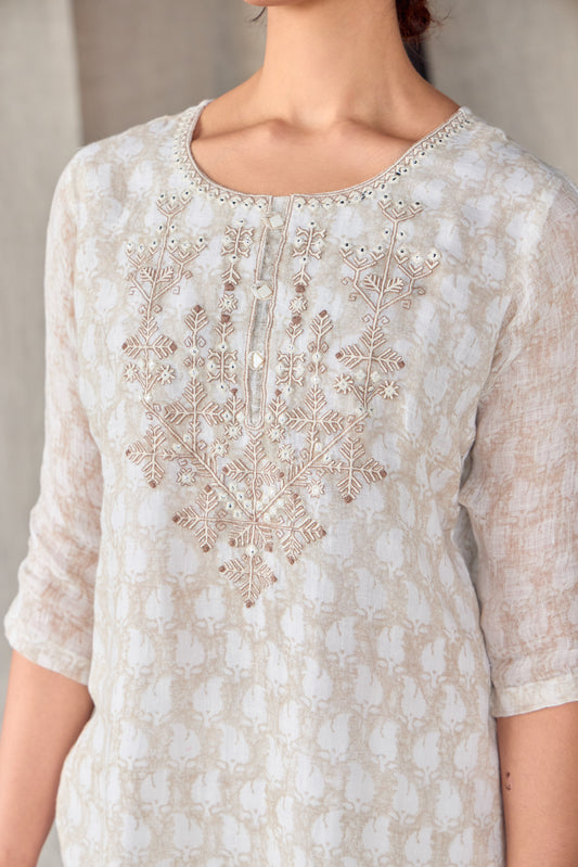Handblock Off White Pure Linen Kurta