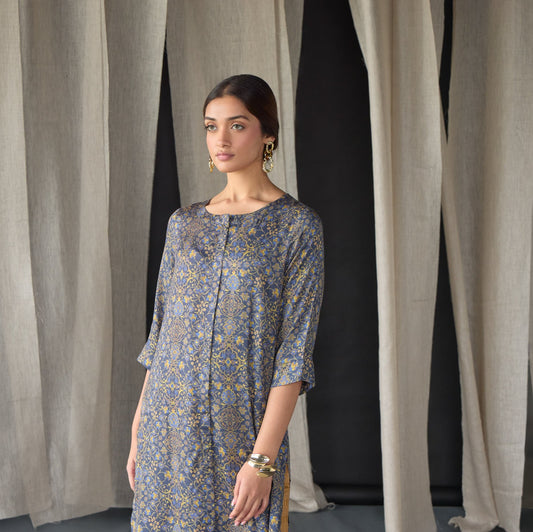 Grey Ajrakh Tencel Kurta