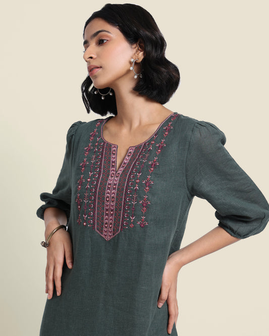 Pure Linen Embroidered Kurta