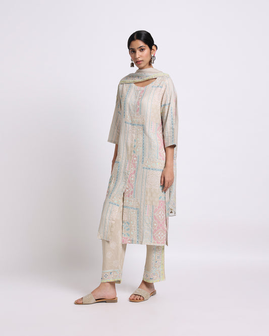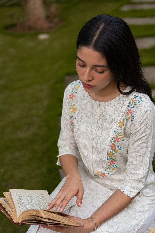 Cream Floral Embroidered Kurta Set