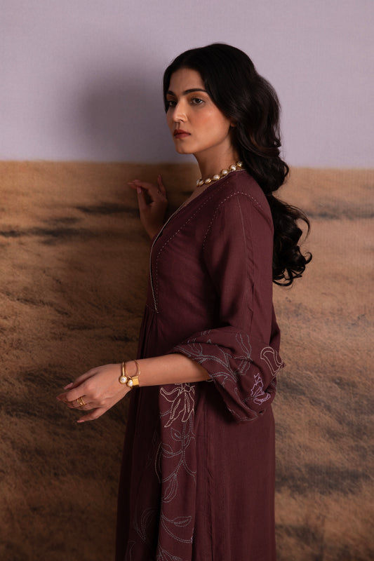 Plum Linen Kurta Set with Odhani