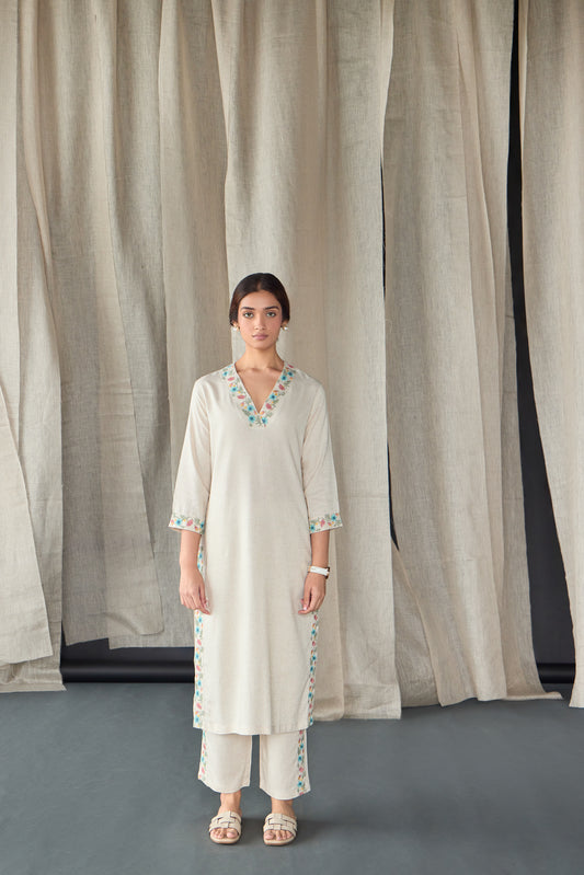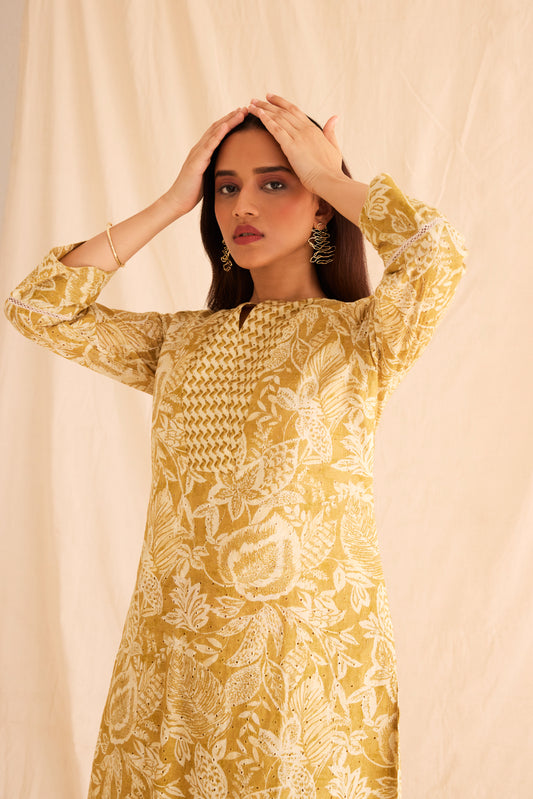 Mustard Cutwork Schiffli Cotton Kurta Set