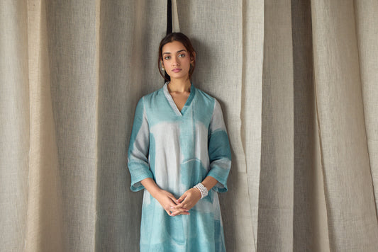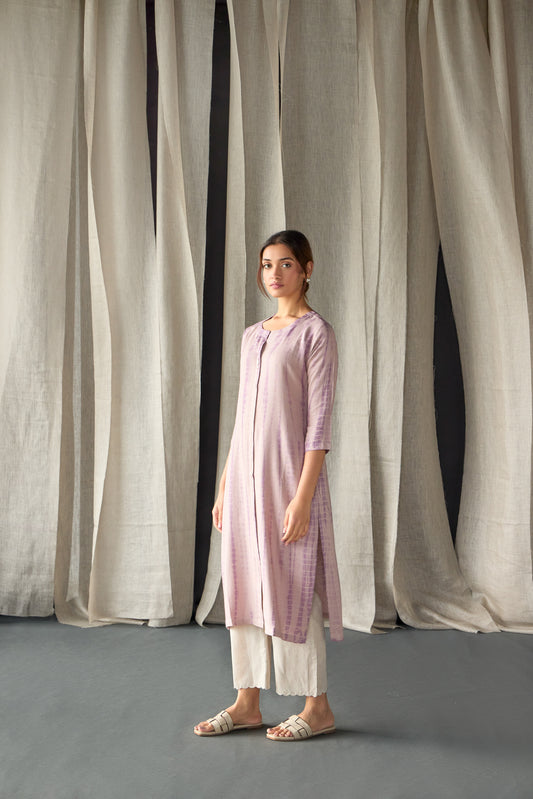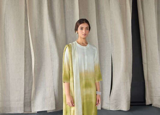Crinkled Vegan Silk & Tencel Kurta Set-Dusk